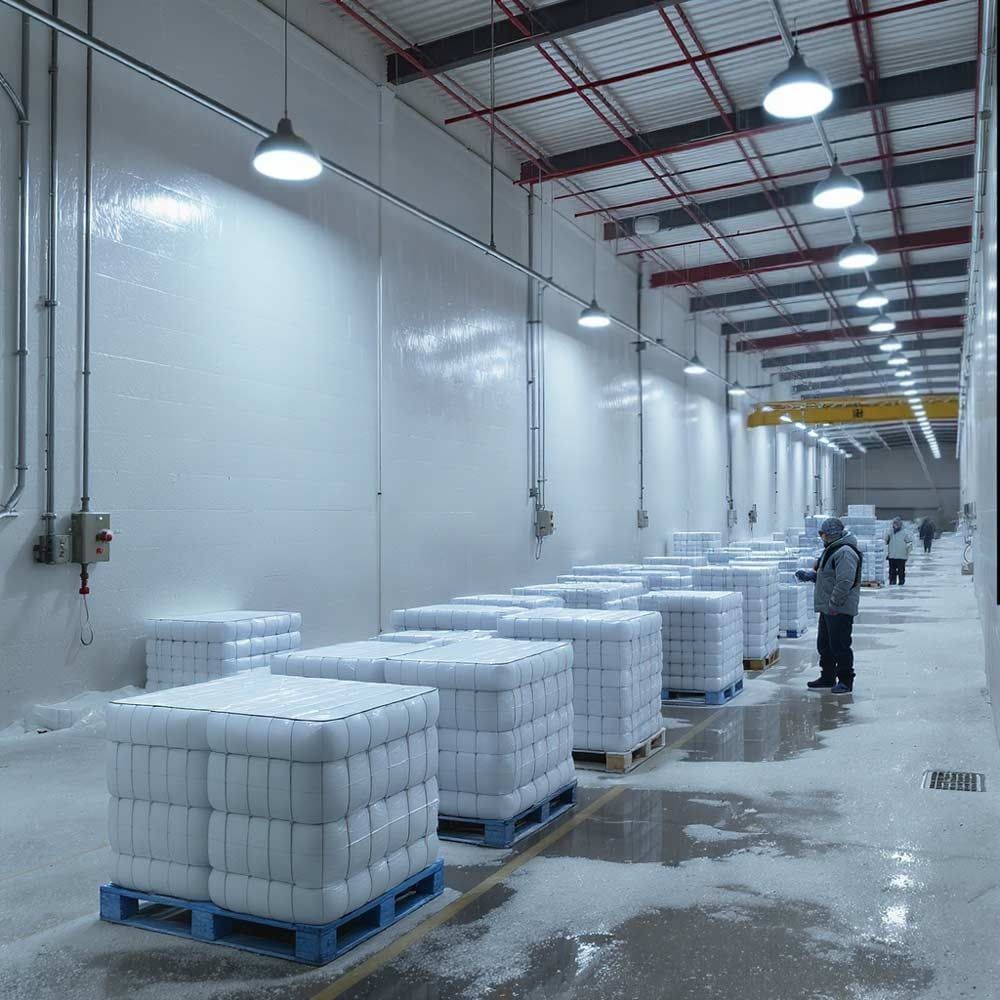 Lumière stable, non éblouissante, parfaitement adaptée aux zones de travail, de stockage et de circulation.